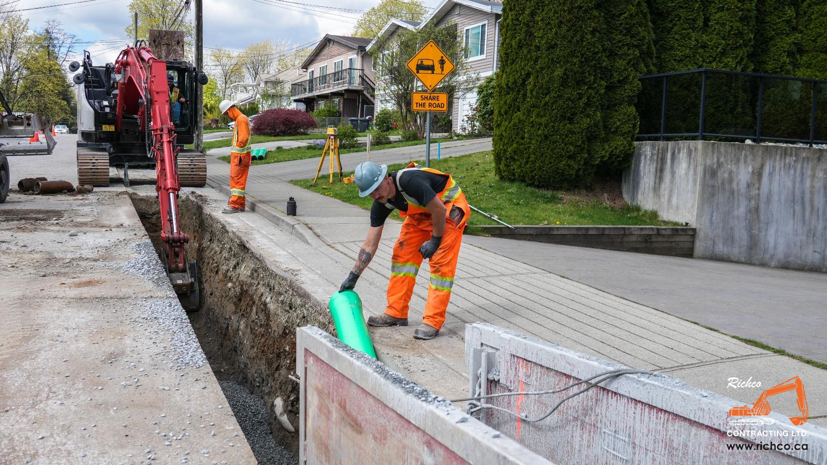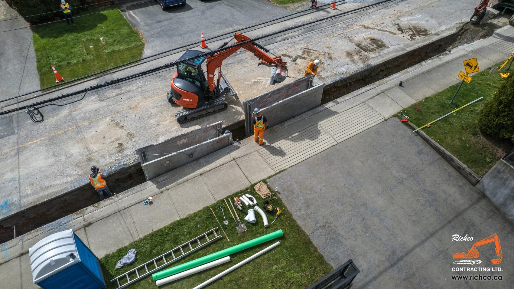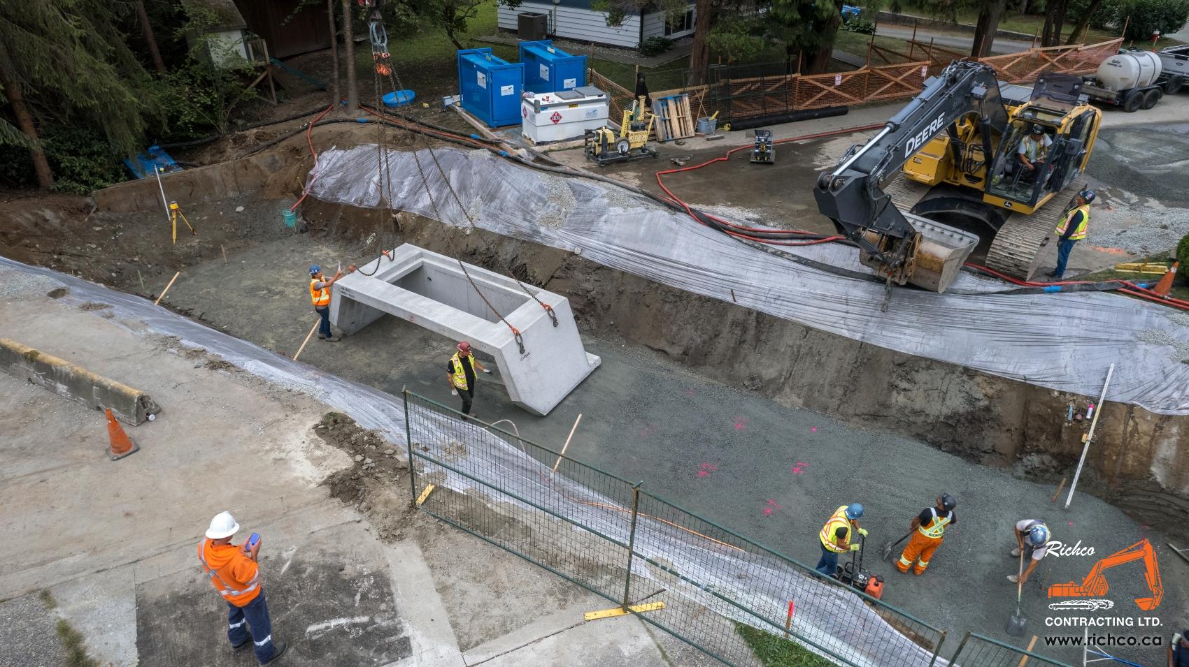 Richco is a family-run civil contractor with deep roots in the Lower Mainland - and deep experience in the work that keeps communities running. From watermain and sewer installations to road reconstruction, in-stream restoration, and emergency response – we're the contractor municipalities and engineers call when the job needs to be done right.