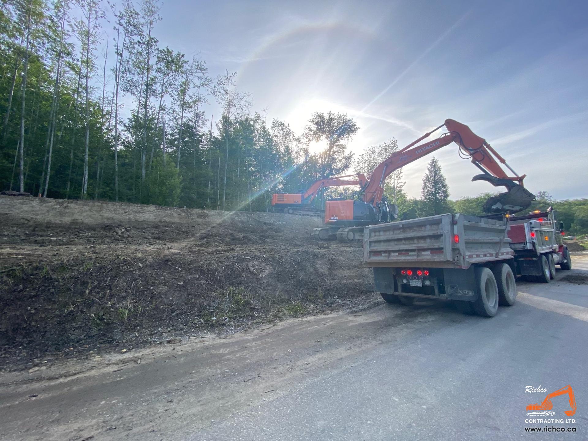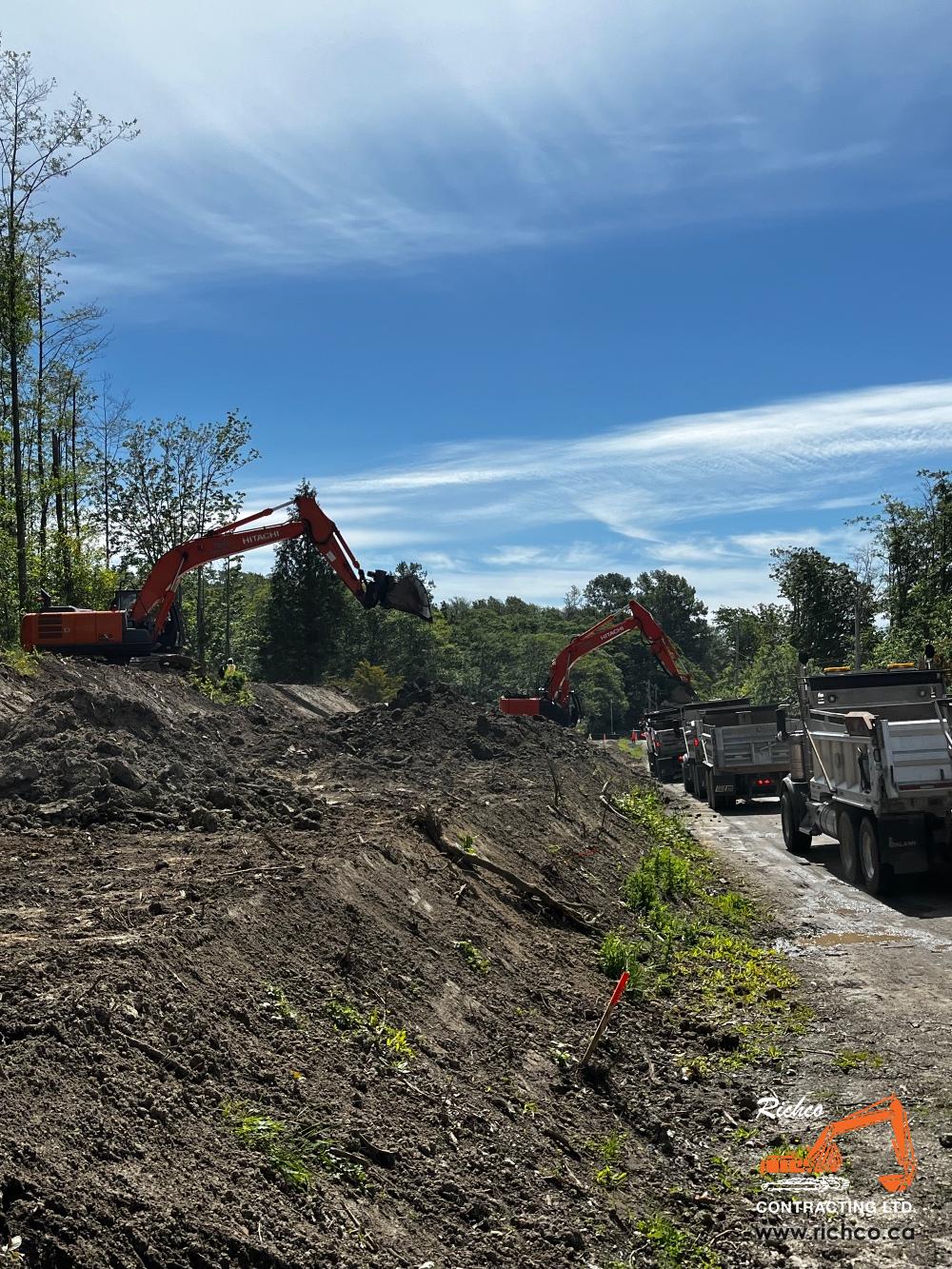 Brush cutting, stump removal, and controlled bulk excavation throughout
